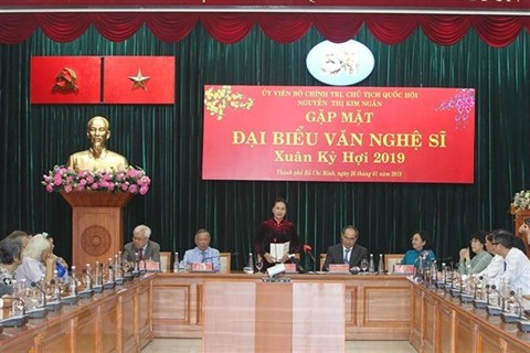 Le même jour, dans l'ambiance festive du Têt du Cochon 2019, la présidente de l’AN, Nguyên Thi Kim Ngân, a organisé une rencontre avec des représentants du milieu des écrivains et artistes exemplaires dans la région du Sud.
