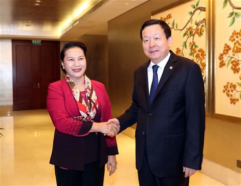 La présidente de l’Assemblée nationale du Vietnam, Nguyên Thi Kim Ngân, a exprimé sa satisfaction devant le développement positif et stable des relations entre le Vietnam et la Chine et la coopération bilatérale efficace dans l'économie, le commerce et l'investissement et aussi la coopération décentralisée.