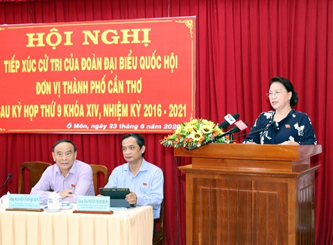 | La présidente de l’Assemblée nationale, Nguyên Thi Kim Ngân, a rencontré mardi 23 juin, des électeurs de la ville de Cân Tho, dans le delta du Mékong. |