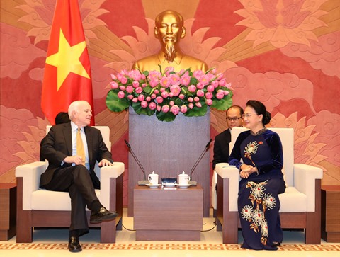 Saluant la visite de travail du sénateur John McCain et de la délégation l'accompagnant, la présidente de l'AN a estimé que cette visite contribuera à promouvoir les relations bilatérales, dont celles des deux organes législatifs, alors que la coopération intégrale entre le Vietnam et les États-Unis se développe heureusement.