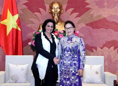 | La présidente de l’Assemblée nationale Nguyên Thi Kim Ngân (droite) et la responsable du Parquet populaire suprême cubain Yamila Pena Ojeda. |
