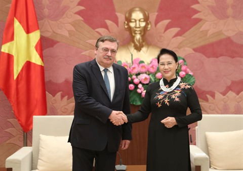 | La présidente de l’Assemblée nationale, Nguyên Thi Kim Ngân, et l’ambassadeur hongrois au Vietnam, Ory Csaba. |