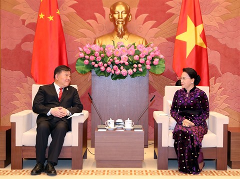 | La présidente de l'AN vietnamienne, Nguyên Thi Kim Ngân, et le vice-président du Comité permanent de l’Assemblée populaire nationale de Chine, Chen Zhu. |