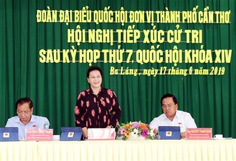 | La présidente de l'Assemblée nationale, Nguyên Thi Kim Ngân, a eu une réunion lundi 17 juin avec des électeurs de la ville de Cân Tho. |