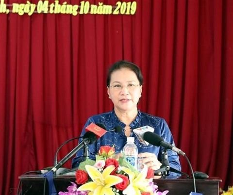 | La présidente de l'AN vietnamienne, Nguyên Thi Kim Ngân, prend la parole lors de sa rencontre avec les électeurs de Cân Tho, le 4 octobre. |