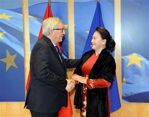 À cette occasion, Nguyên Thi Kim Ngân et Jean-Claude Juncker ont discuté de différentes questions liées à l’EVFTA. Ils ont insisté sur la nécessité d’accélérer les formalités pour le signer et le ratifier rapidement car cet accord est bénéfique au Vietnam, à l’UE et ses membres.