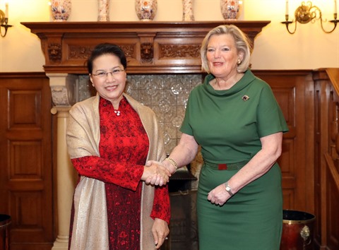 | La présidente de l’Assemblée nationale vietnamienne, Nguyên Thi Kim Ngân (gauche), et la présidente de la Première Chambre des États généraux, Ankie Broekers-Knol, le 27 mars aux Pays-Bas. |