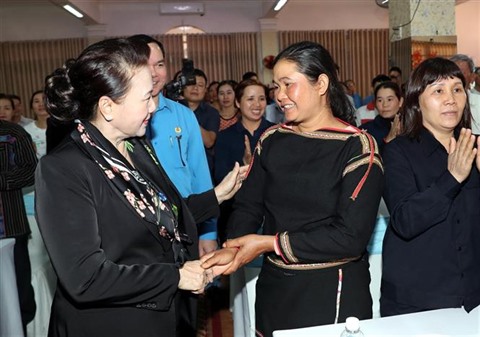 | La présidente de l'Assemblée nationale Nguyên Thi Kim Ngân (gauche), lors d'une rencontre avec des travailleurs de Dak Lak, le 14 janvier dans cette province sur les hauts plateaux du Centre. |