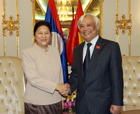 | Le vice-président de l'AN du Vietnam, Uông Chung Luu (droite), a reçu le 21 avril Pany Yathothu, présidente de l'AN du Laos. |