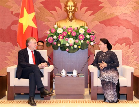| La présidente de l'AN, Nguyên Thi Kim Ngân, reçoit le président de la Commission du commerce international, Bernd Lange, |