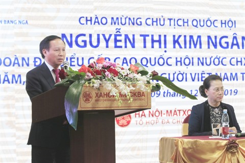 | La présidente de l'Assemblée nationale Nguyên Thi Kim Ngân rencontre des Vietnamiens vivant en Russie, le 9 décembre 2019. |