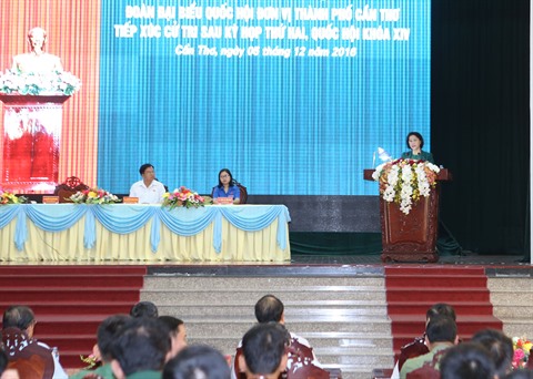 | La présidente de l’Assemblée nationale Nguyên Thi Kim Ngân (debout) s'exprime devant des électeurs de la 9e zone militaire, le 5 décembre à la ville de Cân Tho (Sud). |