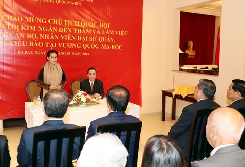 | La présidente de l'Assemblée nationale Nguyên Thi Kim Ngân à l'ambassade du Vietnam au Maroc. |