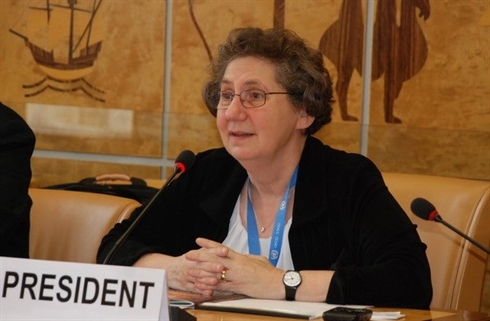 | La présidente de l'Association internationale des juristes démocrates Jeanne Mirer. |