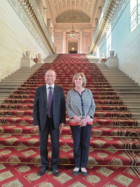| La présidente du Groupe d'amitié France - Vietnam au sein du Sénat, Catherine Deroche, et l'ambassadeur vietnamien Dinh Toàn Thang, le 20 juillet à Paris. |
