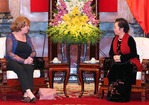 | Nguyên Thi Doan (droite) et Christine Deroche, le 23 février à Hanoi. |