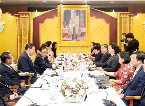 | Entrevue entre la présidente de l'AN vietnamienne Nguyên Thi Kim Ngân et le président du Sénat thaïlandais Pornpetch Wichitcholchai. |