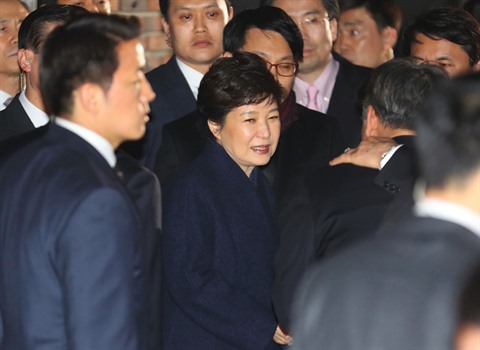 Mme Park a quitté la Maison bleue vers 10h00 GMT pour rejoindre sa résidence privée dans le sud de Séoul. Des images diffusées en direct par la télévision sud-coréenne ont montré une limousine de couleur noire quittant la Maison Bleue, palais de la présidence, escortée par des dizaines de policiers à moto.