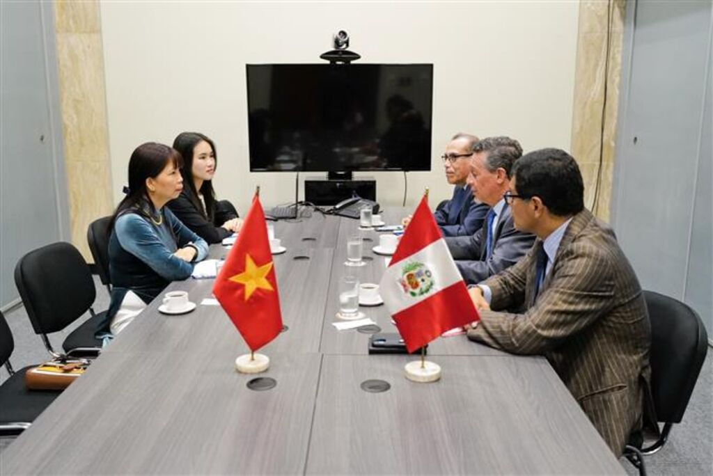 | L'ambassadrice du Vietnam au Brésil et au Pérou, Pham Thi Kim Hoa, lors d'une séance de travail avec le ministre péruvien des Affaires étrangères. |