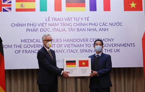 Le journal DW a informé que le gouvernement vietnamien avait fait don de 550 000 masques antibactériens à des représentants de cinq ambassades européennes à Hanoï que sont l'Allemagne, la France, l'Italie, l'Espagne et le Royaume-Uni.