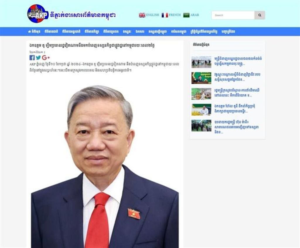 | L'article sur la visite d'État du président vietnamien Tô Lâm publié dans le site de l'Agence de presse du Cambodge. |
