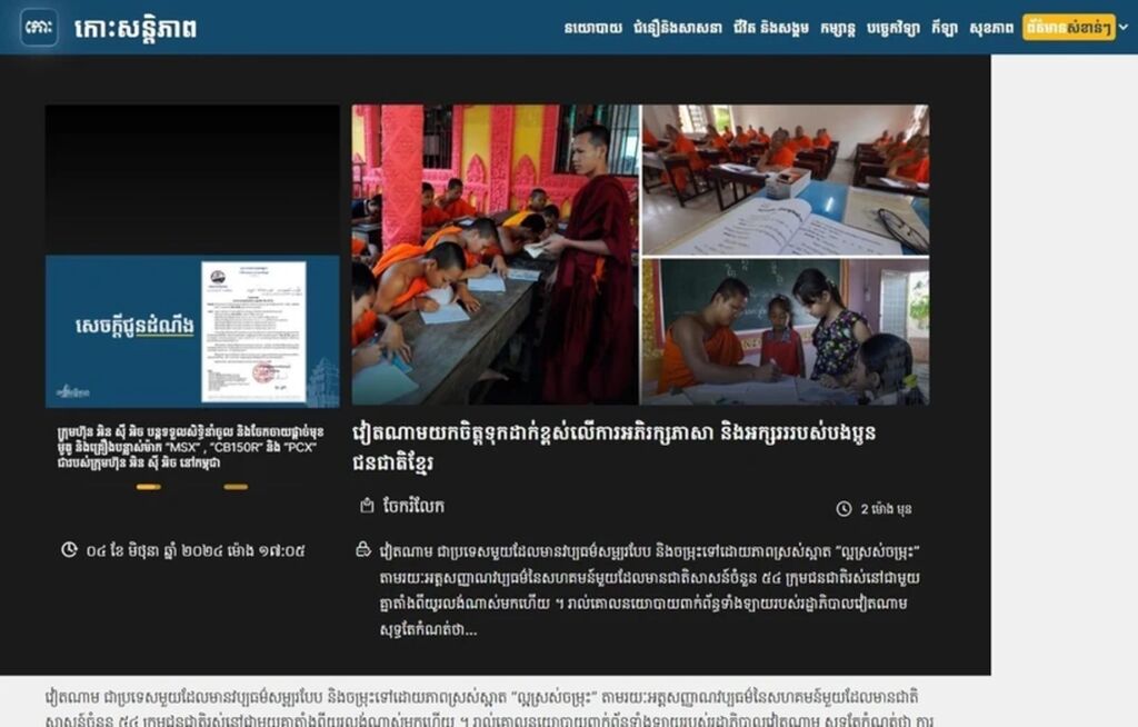 Dans son article publié le 4 juin sur la page d'accueil de la version khmère de l'AKP a présenté les activités d'organisation de l'enseignement et de l'apprentissage de la langue khmère dans les provinces et villes du sud du Vietnam.