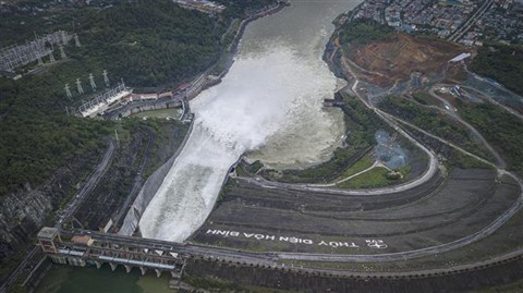 | Vue d'ensemble de la décharge du réservoir hydroélectrique de Hoà Binh. |
