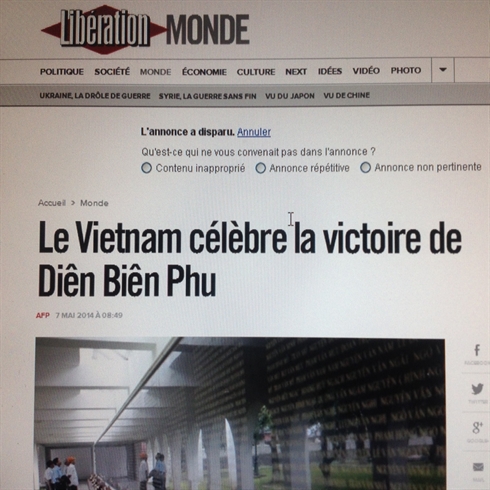 | Un article sur la victoire de Diên Biên Phu publié par Libération. Photo : TH/CVN |