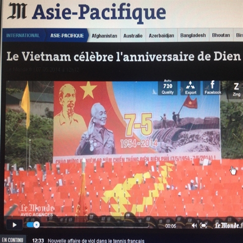 | Un vidéo publié sur le journal en ligne Le Monde reflétant le meeting en l'honneur de la victoire de Diên Bien Phu au Vietnam. Photo : TH/CVN |