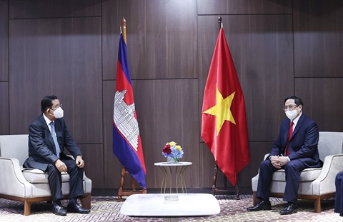 | Le Premier ministre Pham Minh Chinh (droite) rencontre son homologue cambodgien Samdech Techo Hun Sen. |