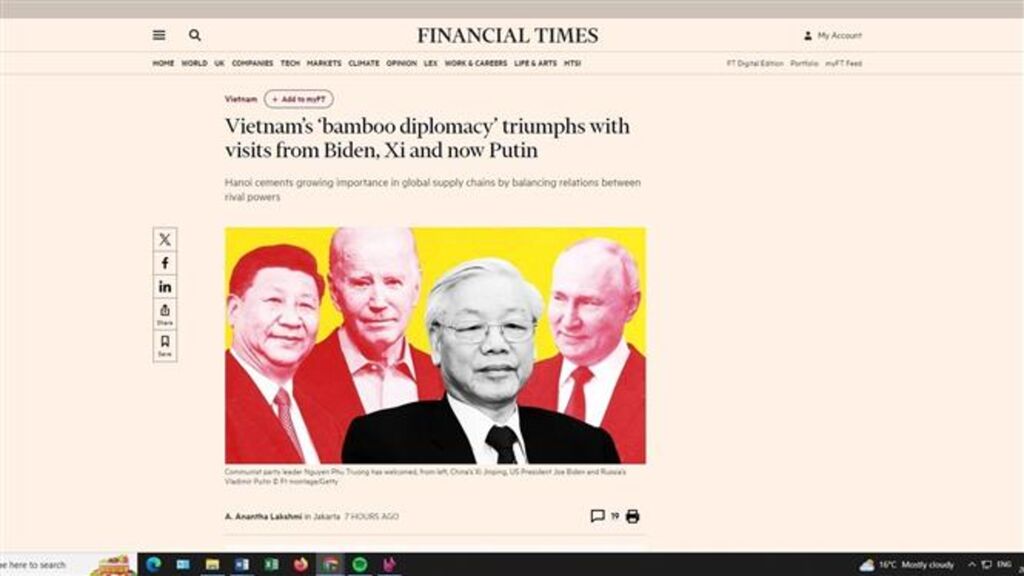 | Le journal britannique "Financial Times" a estimé le 20 juin que le Vietnam avait récolté de bons résultats grâce à sa "diplomatie du bambou". |