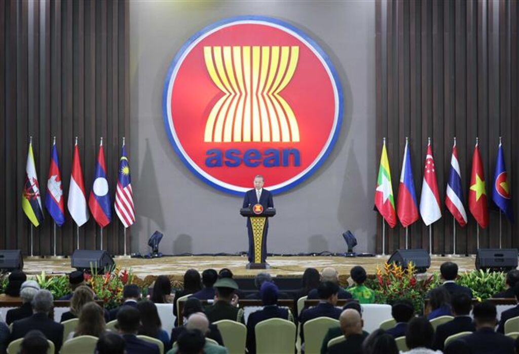 | Le secrétaire général du Parti communiste du Vietnam, Tô Lâm, prend la parole lors de la cérémonie de célébration de 30e anniversaire de l'adhésion du Vietnam à l'ASEAN à Jakarta. |