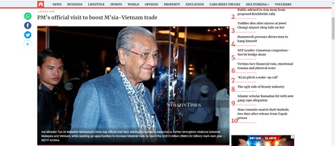 D’autres journaux locaux, tels que Malaysiakini, The Sun Daily…, ont publié des articles affirmant que le Vietnam était un partenaire commercial important de la Malaisie et que la visite du Premier ministre Mahathir Mohamad au Vietnam permettrait d'intensifier les relations bilatérales et de régler les désaccords.