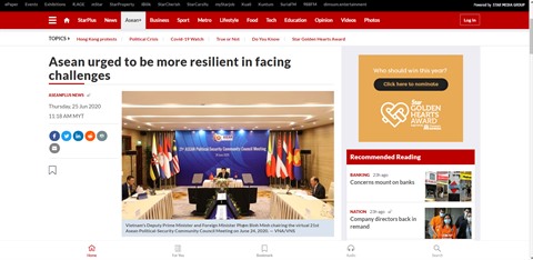 Pendant ce temps, dans son article intitulé "ASEAN doit être plus active face aux défis", le journal The Star a souligné les résultats de la 21e conférence du Conseil de la communauté politique et de sécurité de l’ASEAN, présidée par le vice-Premier ministre et ministre des Affaires étrangères vietnamien, Pham Binh Minh.