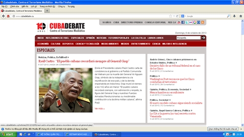 Le site web cubadebate a égélement publié une biographie de l'éminent dirigeant de l'Armée populaire du Vietnam, affirmant qu'il est non seulement un maître dans l'art de la direction de la lutte révolutionnaire, mais aussi l'auteur du livre célèbre La guerre des partisans, l'armée populaire, qui renferme des expériences de celle-ci.. La télévision cubaine a diffusé des documentaires rares sur la vie du général Giap ainsi que des images de ses rencontres historiques avec le leader cubain Fidel Castro et l'ancien président vénézuélien Hugo Chavez à l'occasion de leur visite au Vietnam.