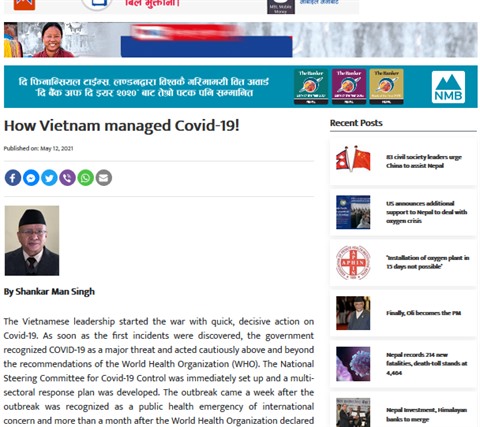 Selon cet article, le Vietnam combattait efficacement l’épidémie de COVID-19 grâce à l’action rapide et décisive du gouvernement tandis que le respect par le public des mesures préventives, dont la distanciation sociale, était mené à bien.