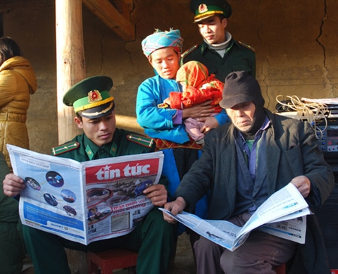 | Des H'Mông à Lai Châu lisent le quotidien Tin tuc (Informations), édité par l'Agence Vietnamienne d'Information. |