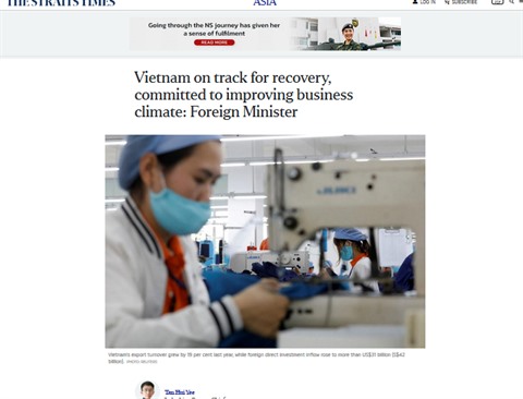 Dans un article publié le 24 février, le Straits Times a cité le ministre vietnamien des Affaires étrangères, Bùi Thanh Son, qui a exprimé sa conviction que la visite du président Nguyên Xuân Phuc à Singapour facilitera la compréhension des entreprises singapouriennes et internationales du fort engagement du Vietnam à promouvoir la reprise socio-économique et la croissance dans la nouvelle normalité.