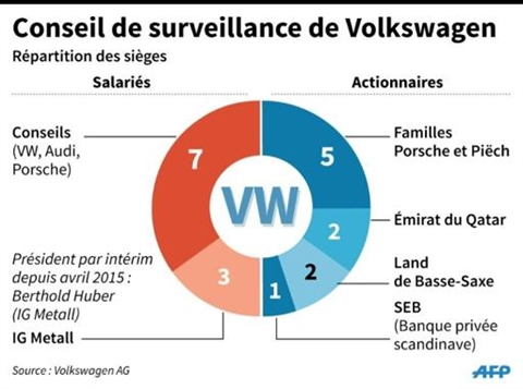 | Répartition des sièges au Conseil de surveillance de Volkswagen. |