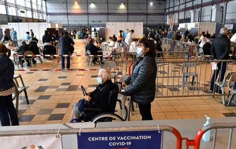 | Un centre de vaccination contre le COVID-19, le 27 mars à Toulouse |