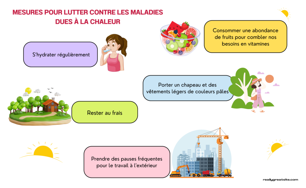 Pour protéger leur santé, il leur est recommandé de pratiquer de la gymnastique, de s’alimenter de manière abondante, de s’hydrater régulièrement et de limiter les sorties lors des pics de chaleur.