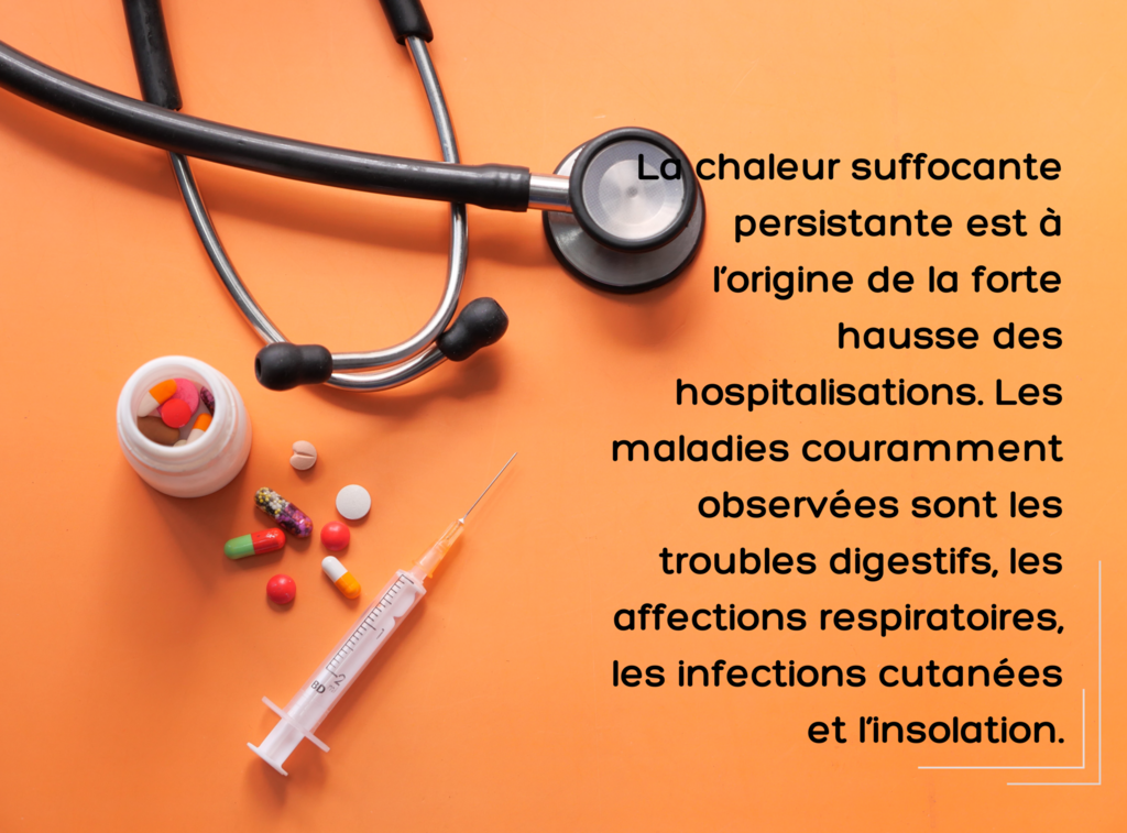Selon le Docteur Nguyên Thanh Hai, chef du Département d’examen médical à l’hôpital, la chaleur suffocante persistante est à l’origine de la forte hausse des hospitalisations. Les maladies couramment observées sont les troubles digestifs, les affections respiratoires, les infections cutanées et l’insolation.