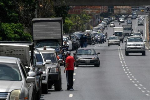 | Des conducteurs attendent de faire le plein à Caracas, le 3 juin. |