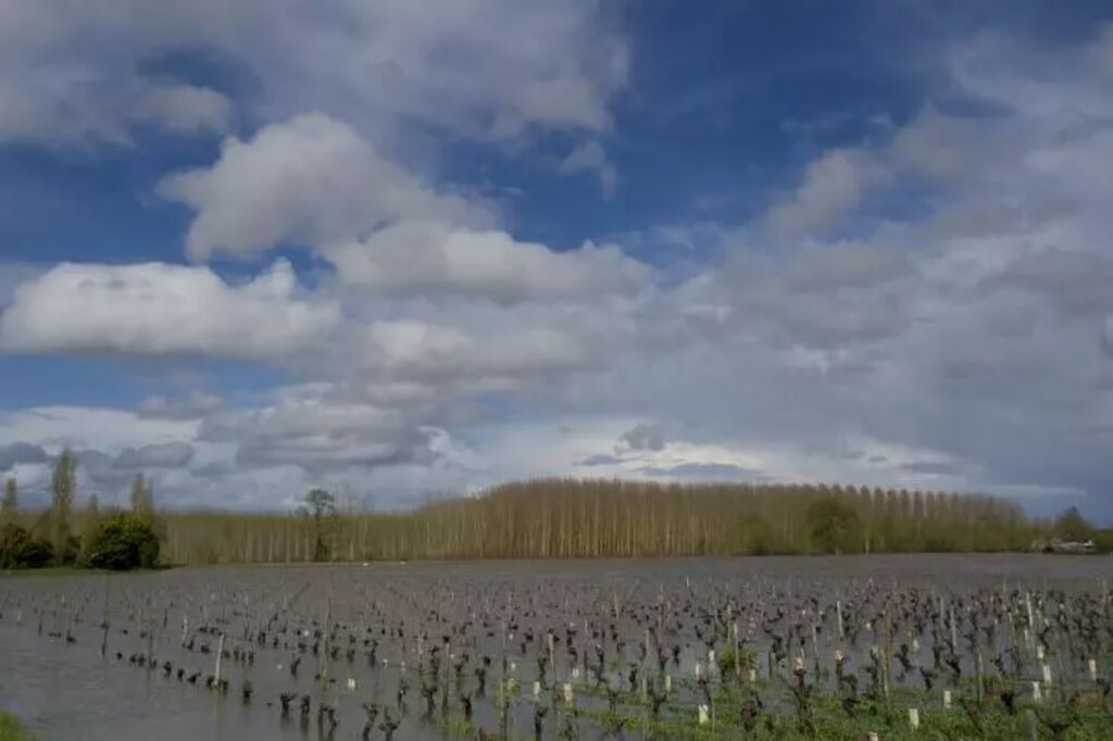 | Des vignes submergées lors de la crue de la Vienne, à Chinon, le 1er avril 2024. |