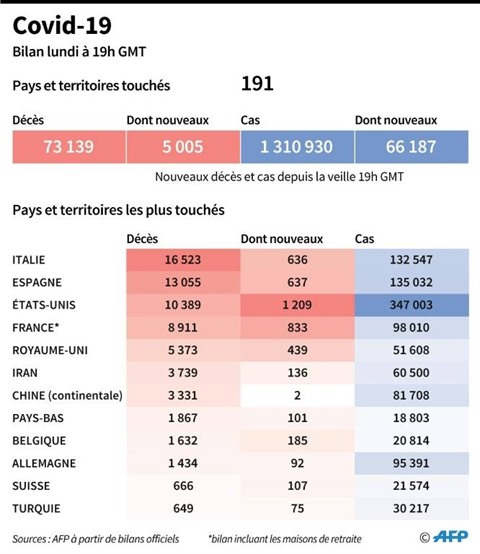 Le 28 mars, au moment où Wuhan commence à sortir de l'isolement, l'Italie dépasse les 10.000 morts, rejointe par l'Espagne cinq jours plus tard.