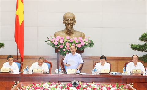 | Le Premier ministre Nguyên Xuân Phuc (debout), lors d'une vidéoconférence nationale sur la protection de l'environnement, le 24 août à Hanoï. |