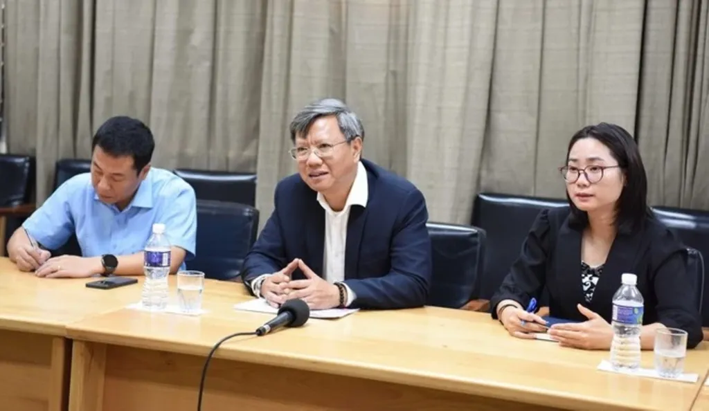 | L'ambassadeur vietnamien à Cuba, Lê Quang Long (centre), lors de la séance de travail. |