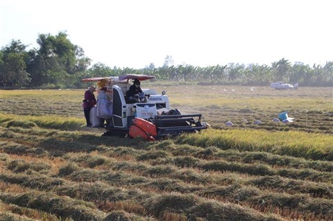 | Récolte rizière dans la province d'An Giang (delta du Mékong). |
