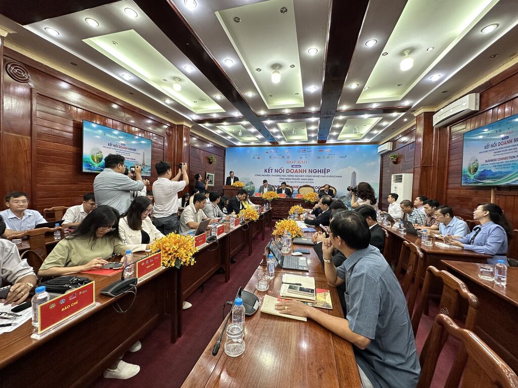 | Conférence de presse sur le Forum de connexion d’affaires de Binh Phuoc - EuroCham 2024, tenue le 29 février dans la ville de Dông Xoài, province de Binh Phuoc. |