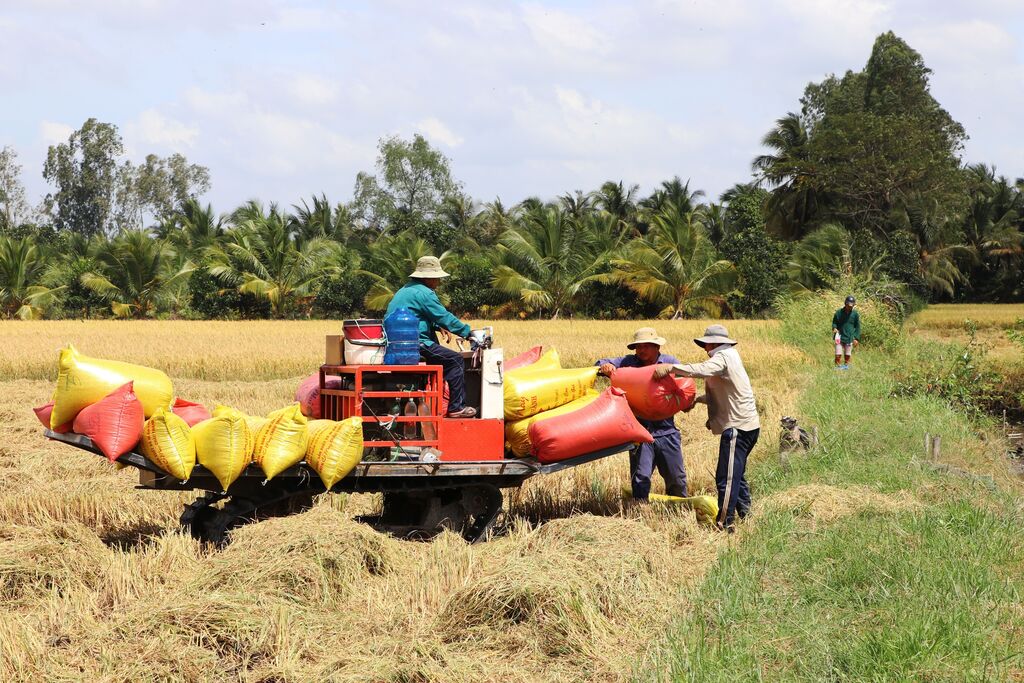 | Récolte de riz de la campagne hiver-printemps dans le district de Tam Binh, province de Vinh Long (Sud). |